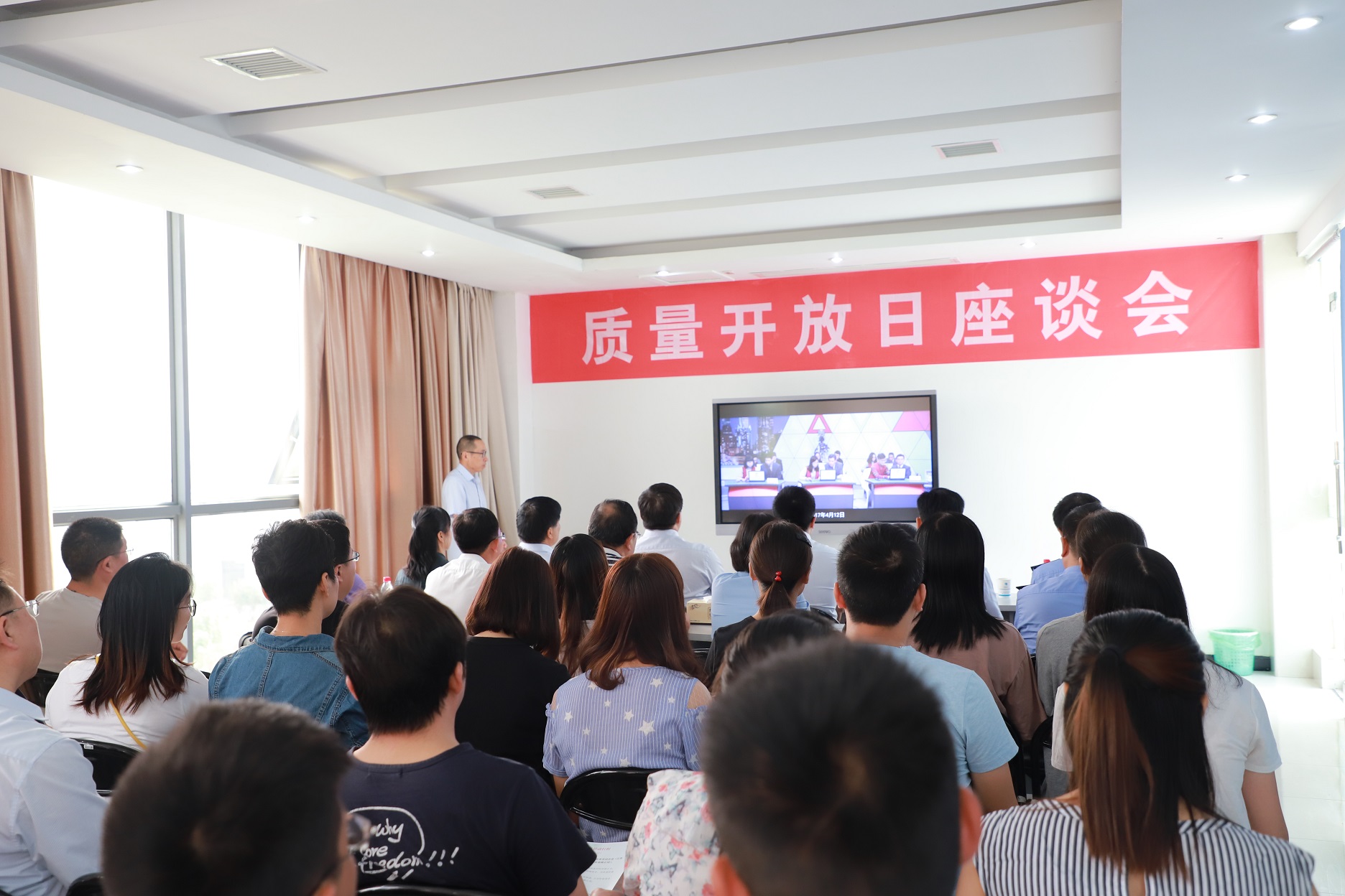 為進一步貫徹落實《質量發展綱要》,展示我公司在質量管理方面所做的工作,在彭澤縣質量強縣領導小組的指導下,9月25日,“2019年全國質量開放月質量開放日”活動在我公司如期舉行。縣委常委、縣工業園區黨工委書記華樺,縣委常委、副縣長陳博,縣政協副主席錢葉友、李文瑞、熊慧蘭以及市場監督管理局、宣傳部、工信委、發改委、科技局、園區管委會、應急管理局、生態環境局、新聯會領導和園區企業代表一行五十多人出席了此次活動。
