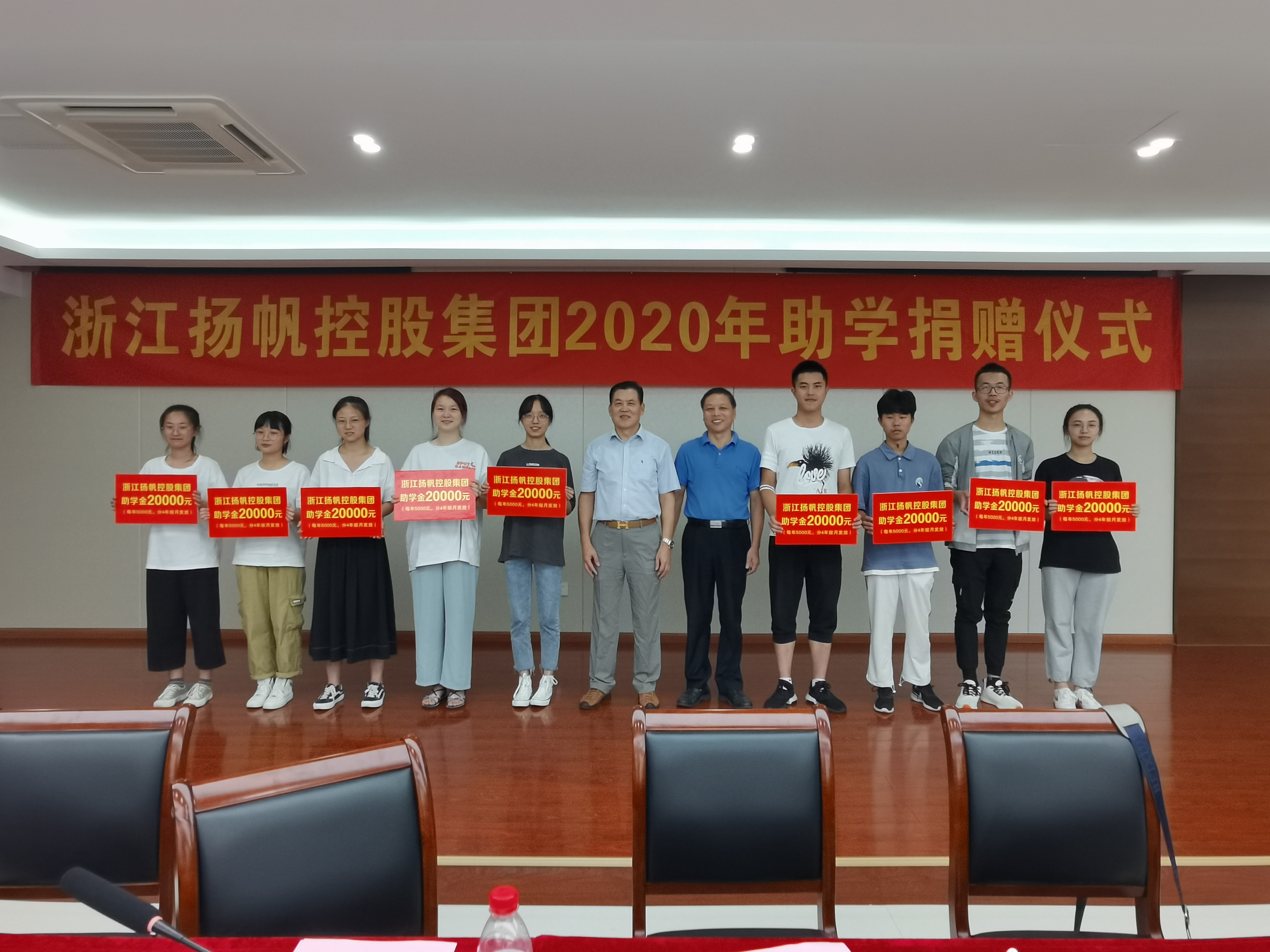 2020年8月27日下午,浙江揚帆控股集團2020助學捐助儀式暨2019級受助學生交流會,在揚帆新材報告廳舉行。揚帆新材創始人、董事、浙江揚帆控股集團董事長樊培仁、麗水市殘聯黨組書記蔡通友、麗水市殘疾人綜合服務指導中心主任汪志勇等領導、以及2018年至2020年的30余位受助學生參加了本次活動。
