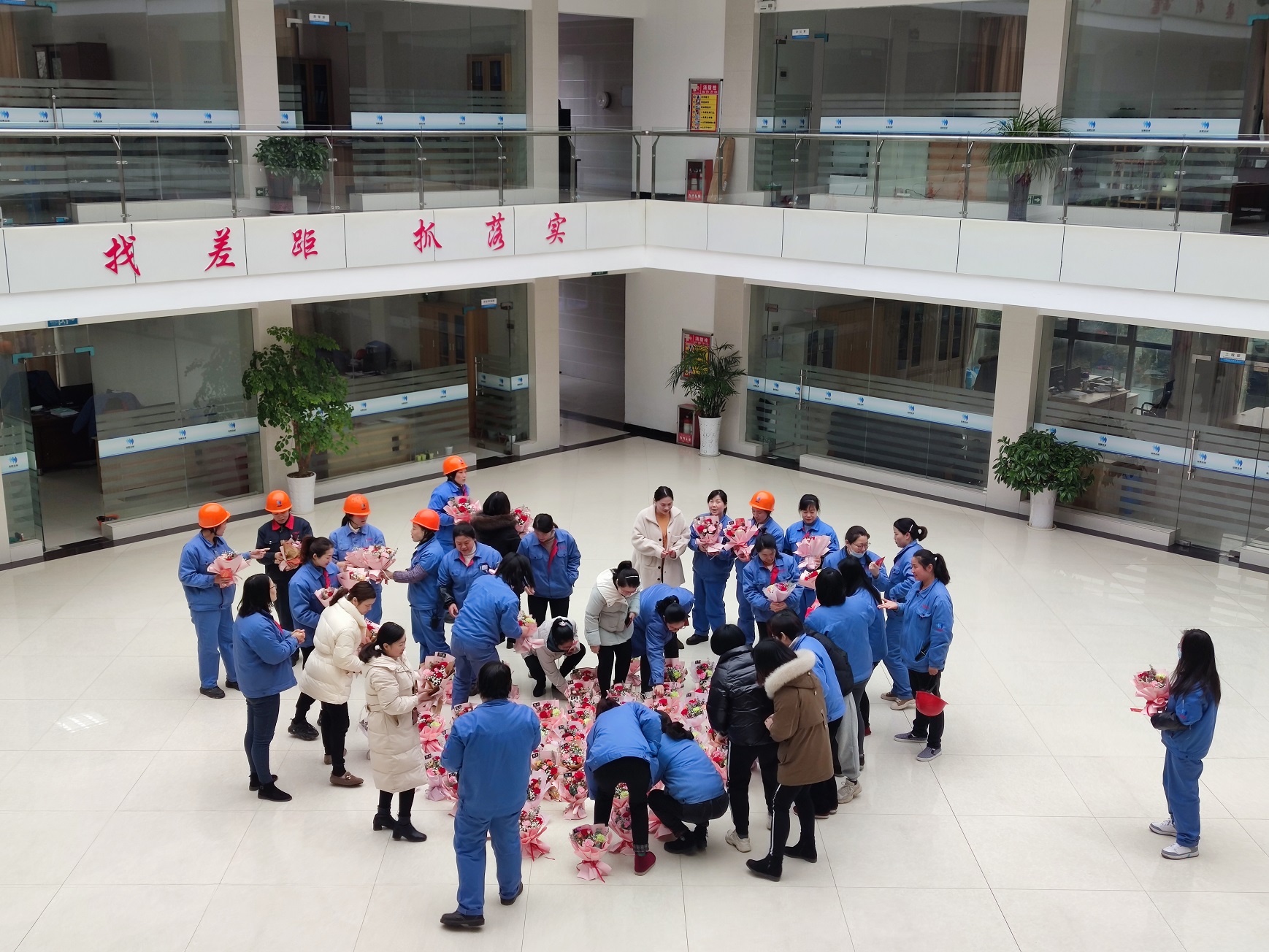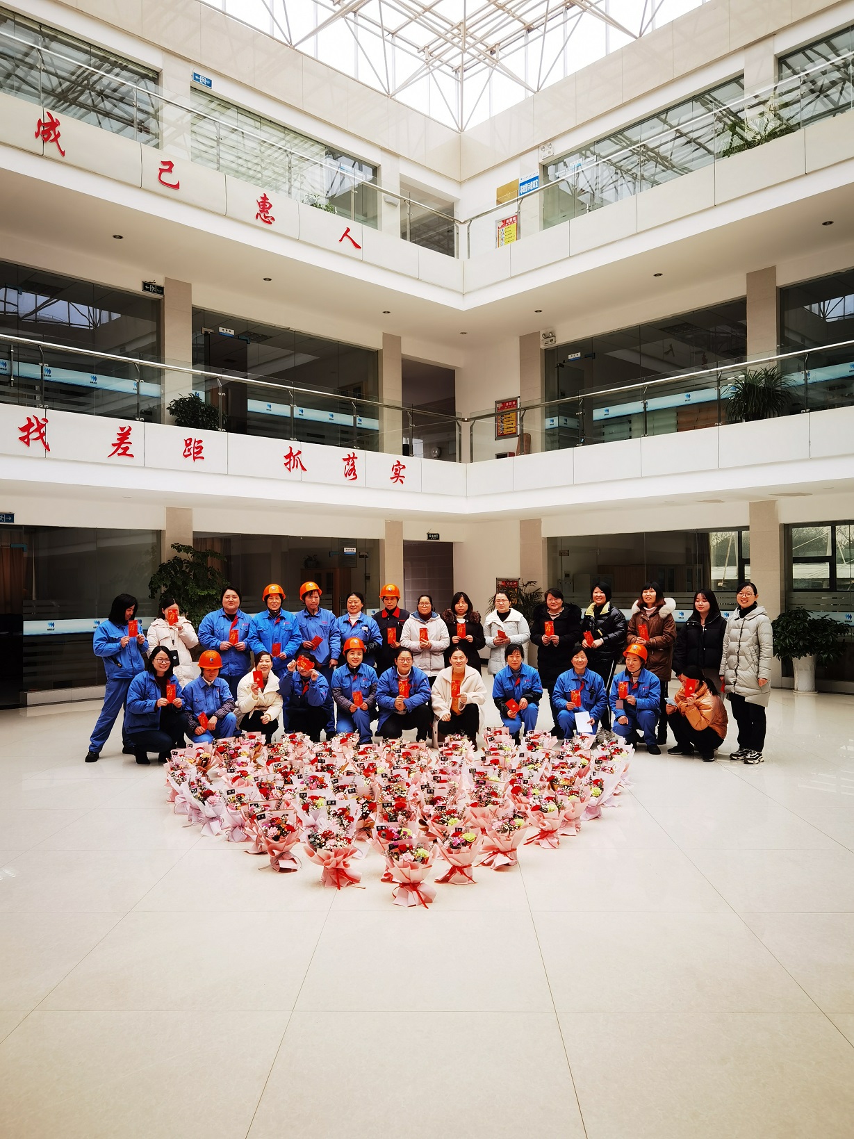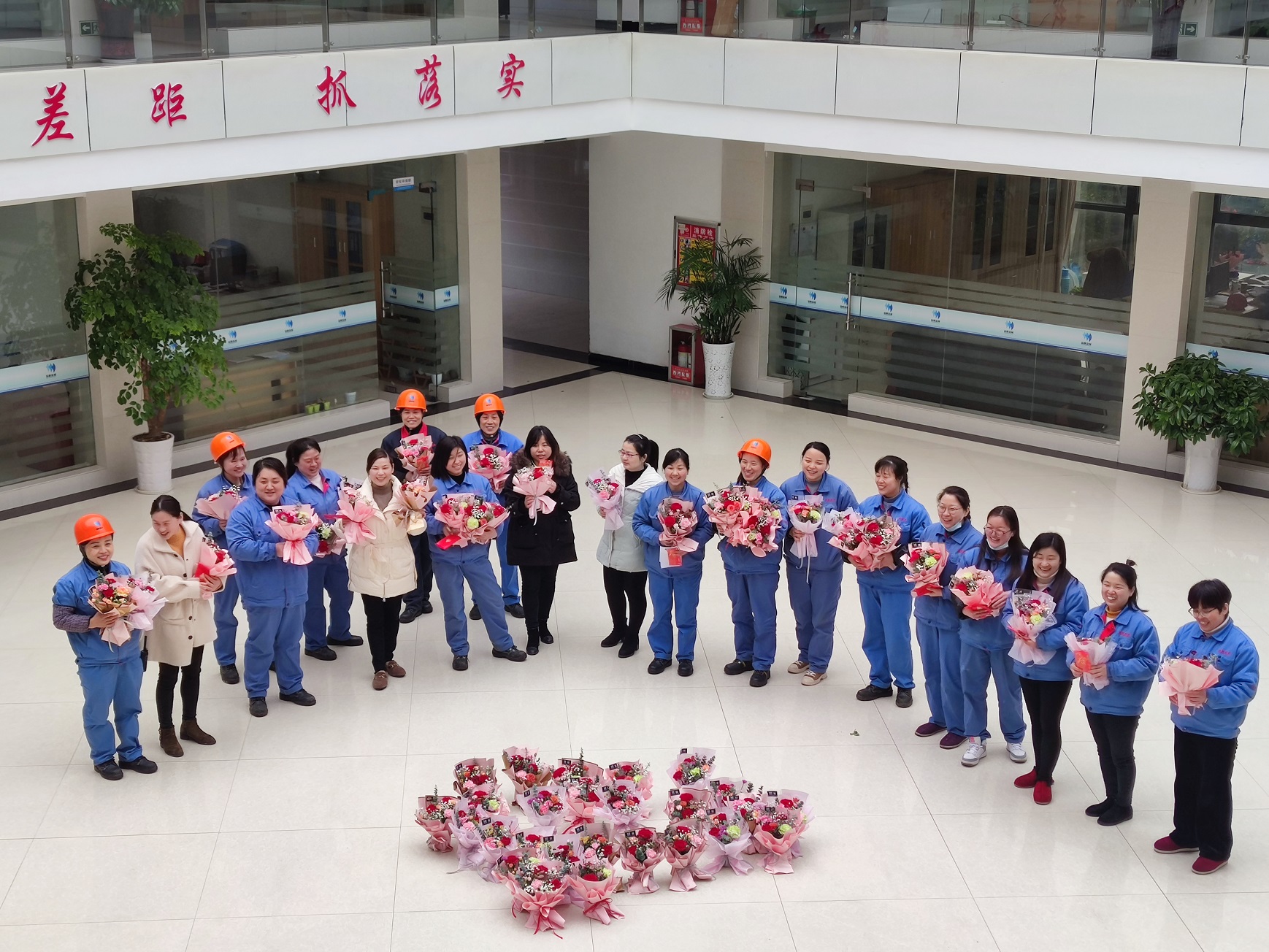 當天一早,工會成員就用一束束鮮花在辦公大樓大廳擺出了一個大大的愛心,迎接大家的是五顏六色的鮮花,美麗的是大家的心情。上午10點,工會召集全體女職工發放了小禮品及鮮花。