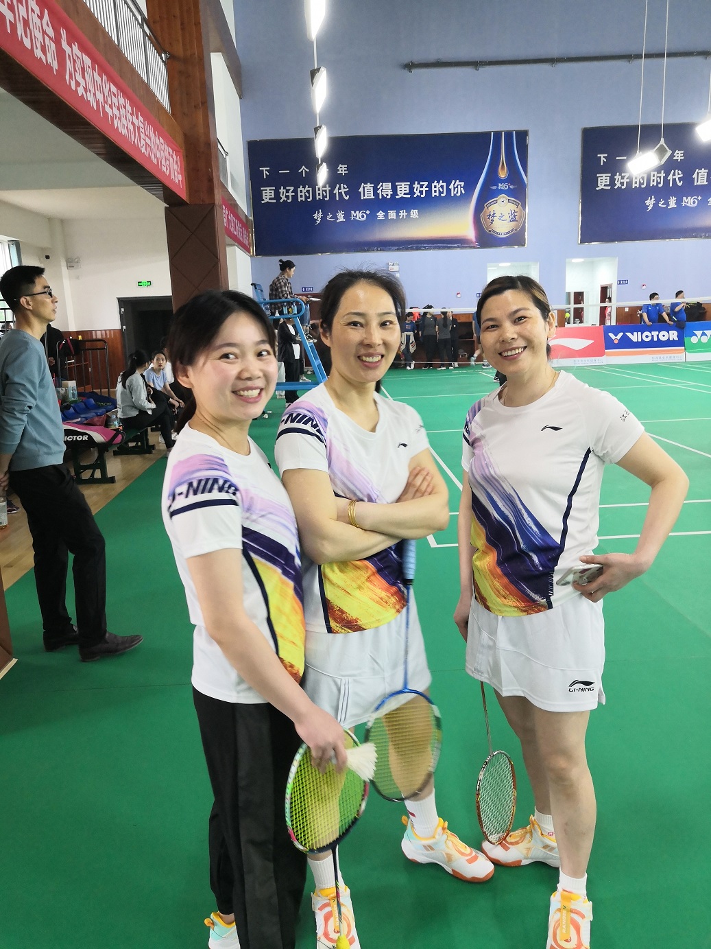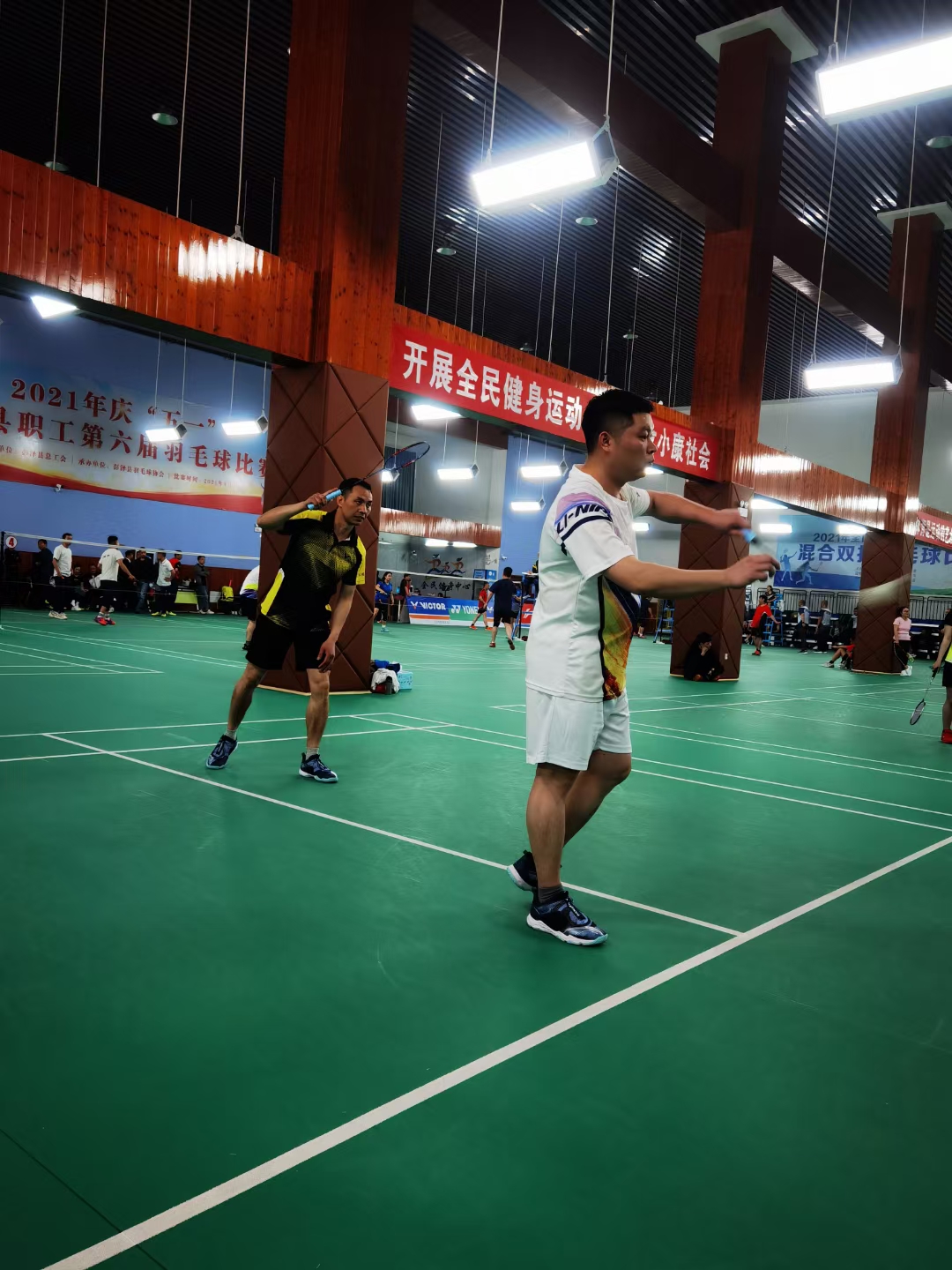 早上經(jīng)過簡短的開幕儀式后,比賽正式打響!高遠(yuǎn)球、吊球、網(wǎng)前搓球、扣殺……!在每一場比賽當(dāng)中羽毛球的這些競技戰(zhàn)術(shù)被我們隊(duì)員發(fā)揮的淋漓盡致,賽場外加油吶喊聲接連不斷,更加鼓舞了隊(duì)員們在場上的斗志,每一個(gè)多拍回合的對抗都是那么的扣人心弦,而為了取得比賽勝利,隊(duì)長與隊(duì)員們絞盡腦汁排兵布陣,最終經(jīng)過一天激烈角逐, “揚(yáng)帆新材隊(duì)”以小組第二出線進(jìn)入8強(qiáng)。