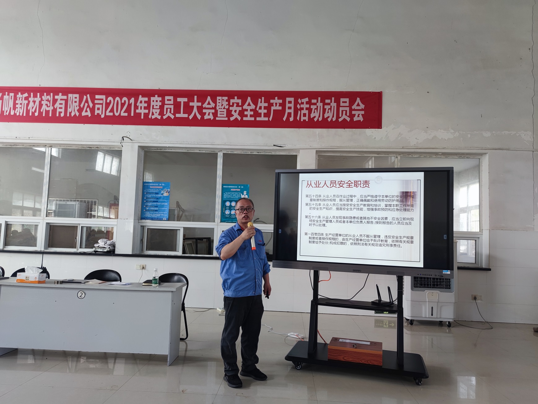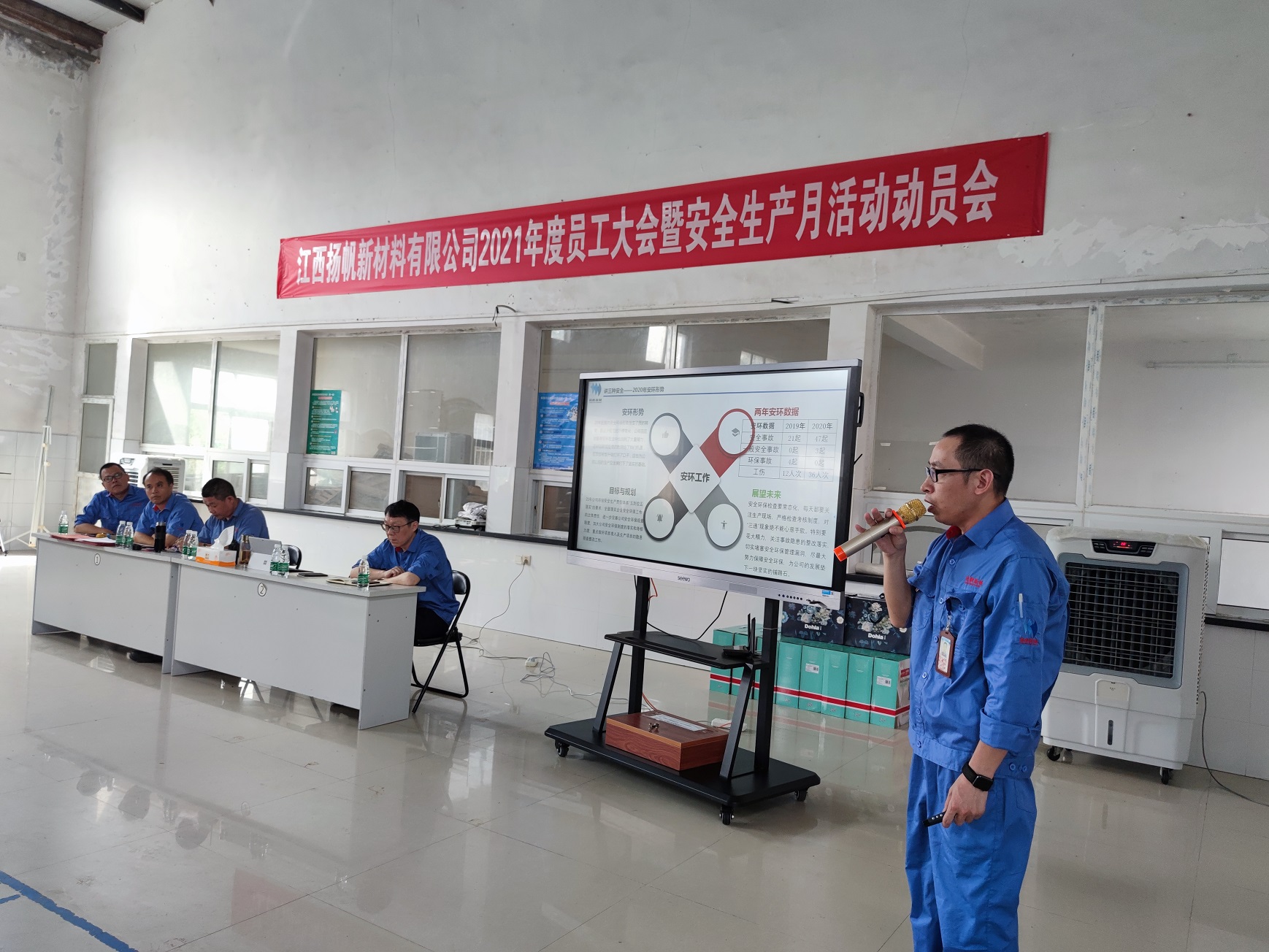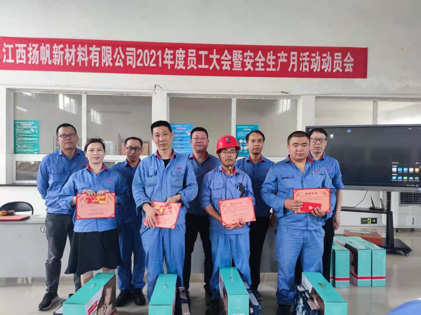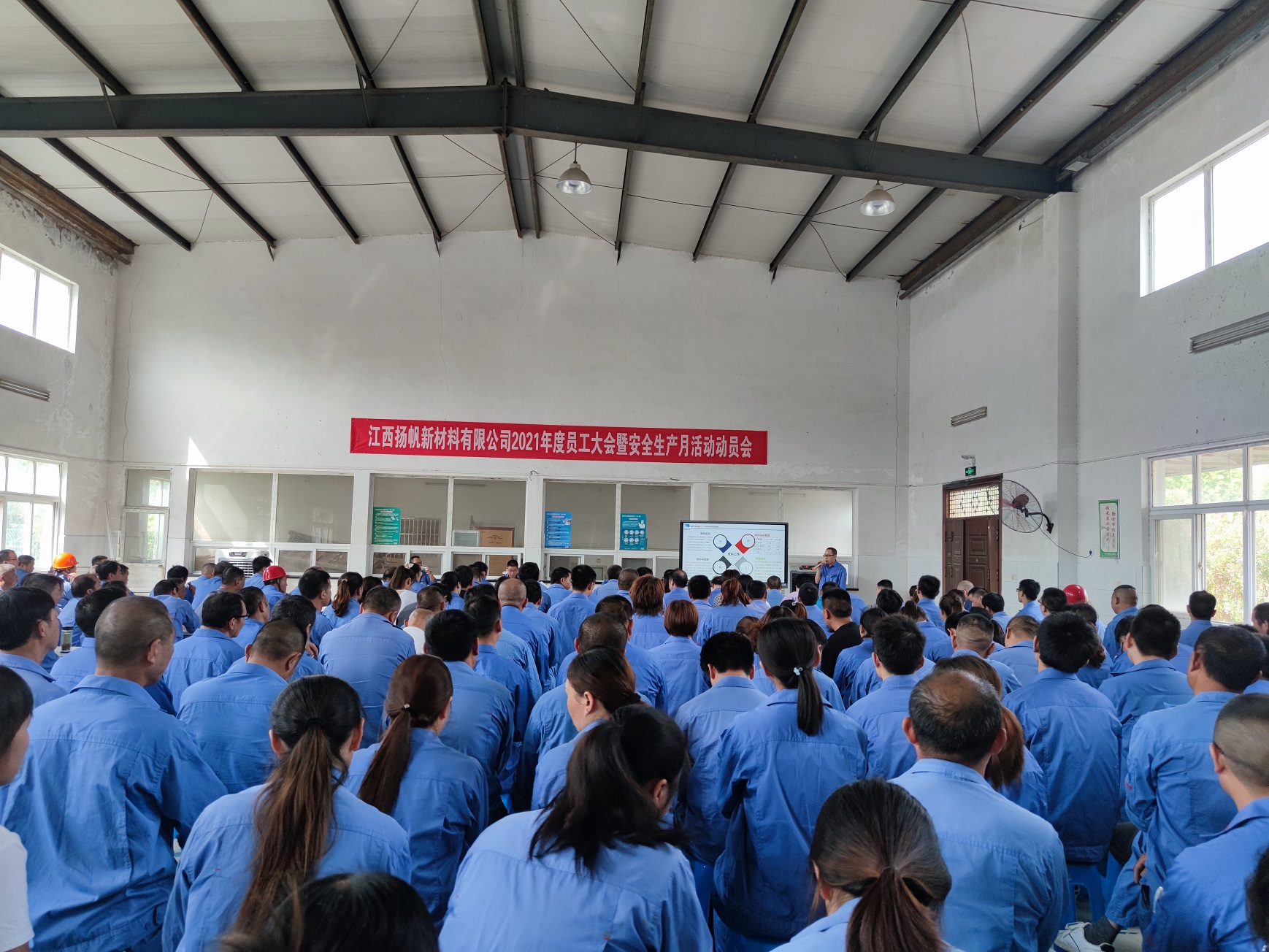2021年6月8日,江西揚帆公司召開2021年度員工大會暨安全生產(chǎn)月動員會。揚帆新材副總裁陶明,江西揚帆公司總經(jīng)理余立志及經(jīng)營班子成員和全體員工參加了此次會議。會議由副總經(jīng)理呂雪皓主持。