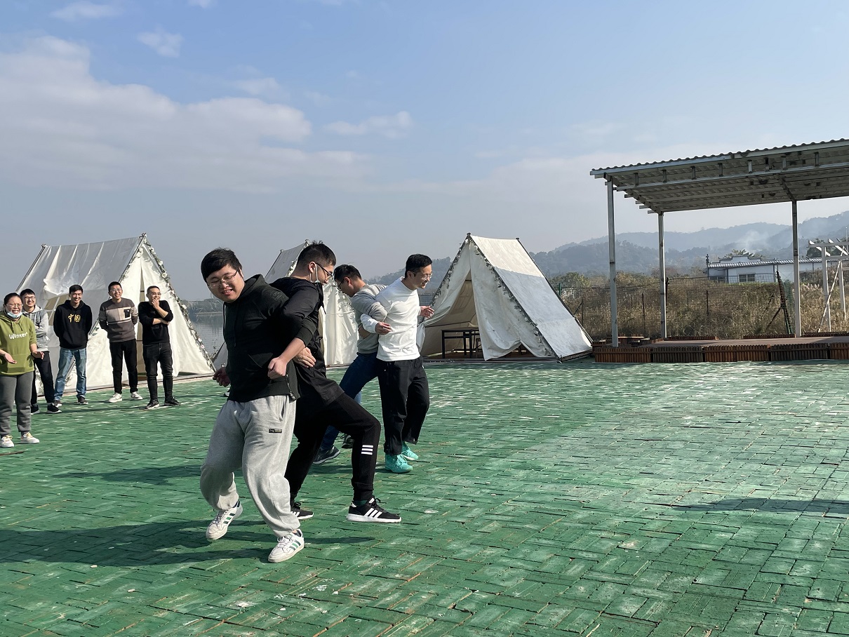經過40多分鐘的車程到達了目的地。首先,為了活躍氣氛,先組織大家進行“極速傳遞”和“同心擊鼓”游戲,在游戲過程中,大家群策群力,商討最佳游戲方案,并通過相互之間的配合,力爭在競賽中取勝。現場隊員全力以赴的競爭,場外啦啦隊的吶喊助威也熱火朝天,一時間,整個場地成為歡樂的海洋。通過這兩個破冰游戲,不僅提升了大家團隊活動的參與感和集體榮譽感,也讓伙伴們更加深刻體會了溝通的重要性,明白了團隊的凝聚力和協作能力才是取得成功的關鍵。