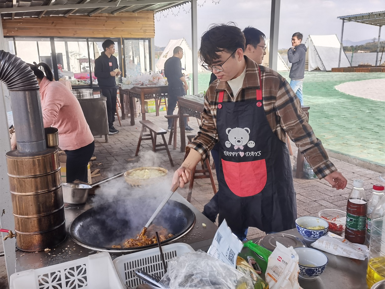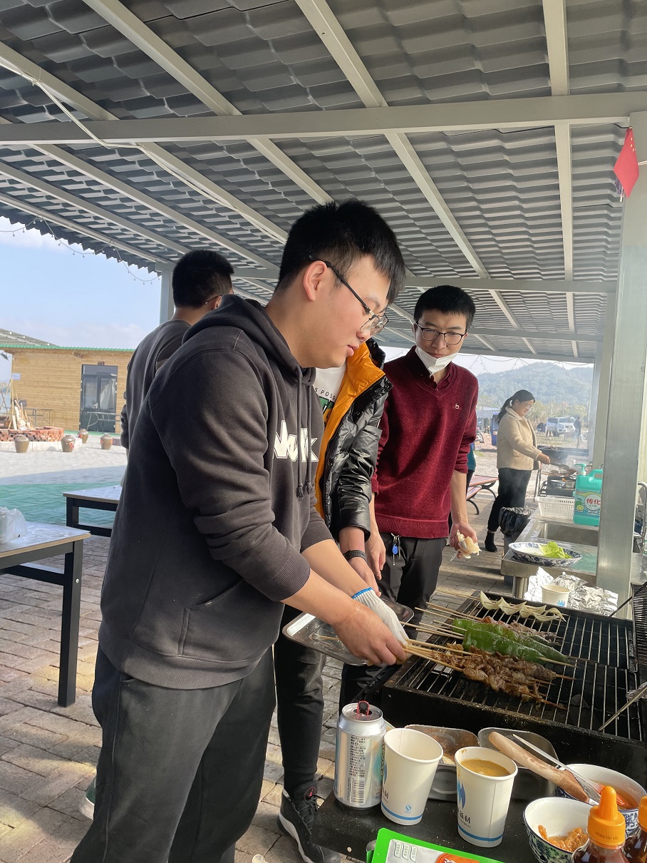 游戲結束后,我們進行了“燒烤”和“土灶燒菜”活動。通過剛才游戲環節的影響,每個人都變得更加積極,分工也更加明確,生火、洗菜、切菜、穿串、烤肉、燒菜,有條不紊,忙而不亂。自娛自樂中,還不時有人為大家高歌幾曲,氣氛十分融洽。