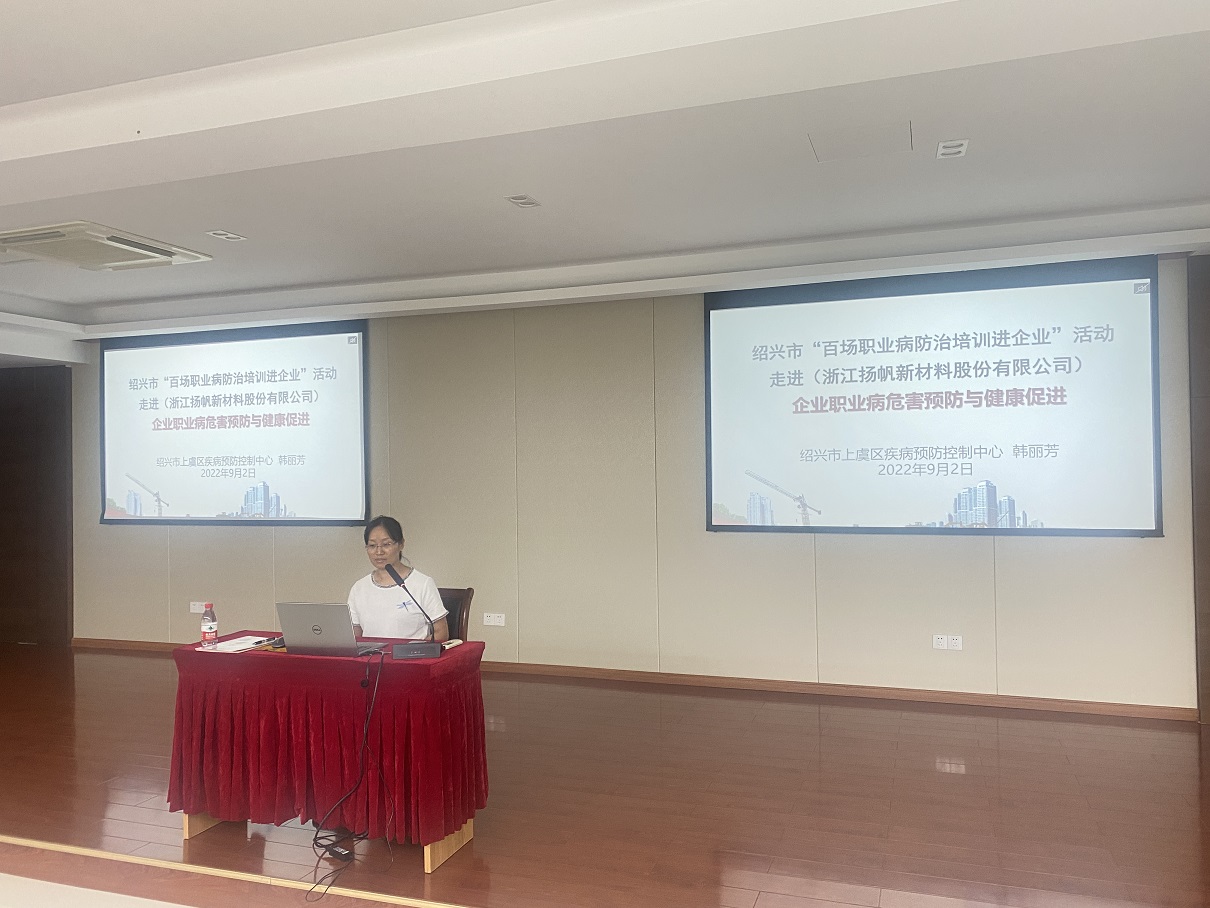9月3日下午,紹興市“百場職業(yè)病防治培訓(xùn)進(jìn)企業(yè)”活動走進(jìn)浙江揚(yáng)帆新材料股份有限公司,以“企業(yè)職業(yè)病危害預(yù)防與健康促進(jìn)”為主題開展宣講,旨在進(jìn)一步豐富公司“職工安全文化”內(nèi)涵,提高廣大職工個人防護(hù)技能,增強(qiáng)職工的安全感和幸福感,公司三十余名員工參加此次主題宣講活動。