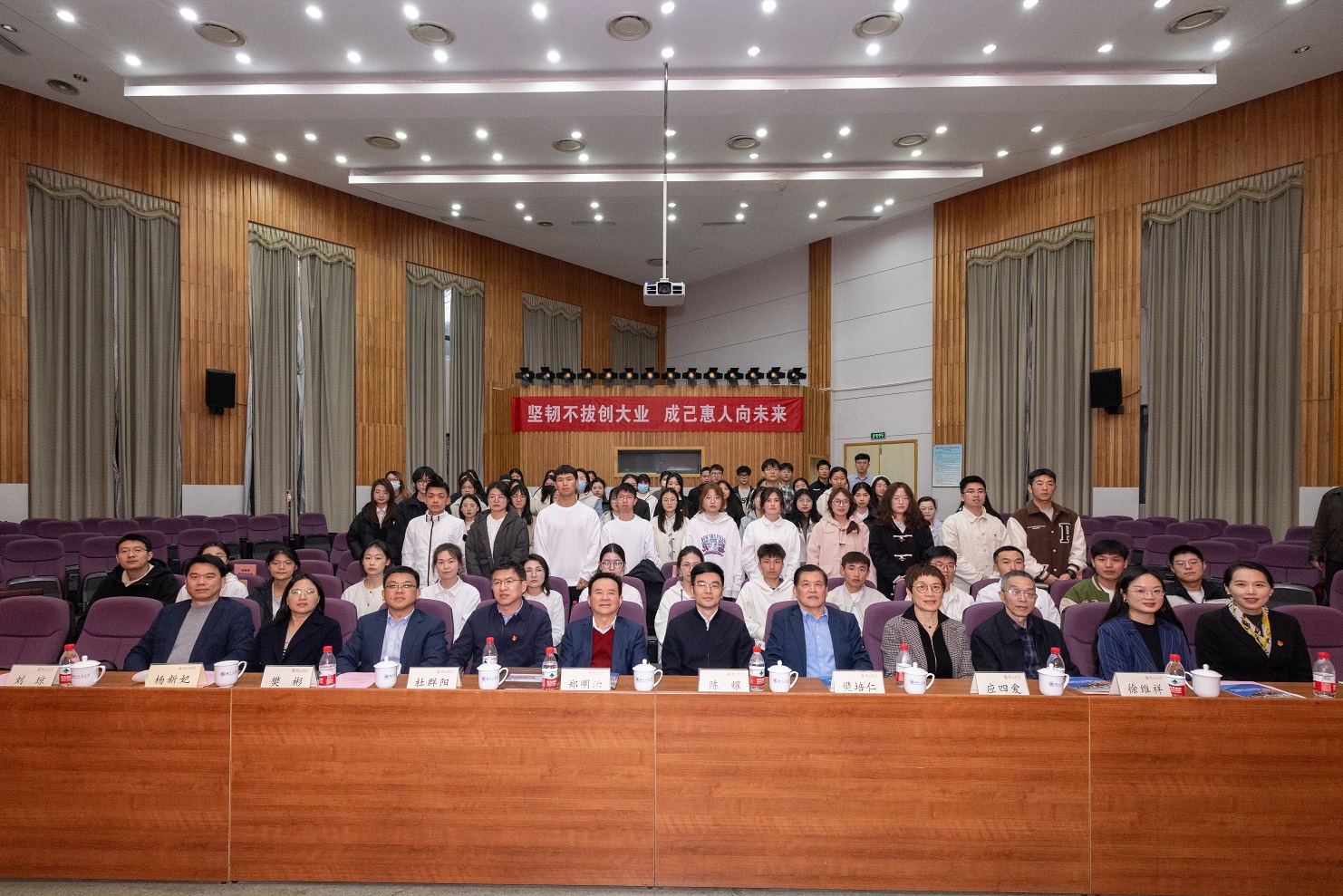 會上,樊培仁董事長向在場師生作了題為《堅韌不拔創大業,成己惠人向未來》的專題報告。他與師生們講述了創業過程中的挫折、失敗、思考和成功,分享了數十年堅持的感恩、助殘、助學、助困慈善事業及以“成己惠人”為核心的人生哲學。他將自身的成長成才經歷與國家的繁榮發展緊密相連,他勉勵師生們學好專業本領、緊跟時代大勢,做到心無旁騖、專心致志、善待財富、善待社會,知恩圖報,為共同富裕的建設貢獻青春力量。