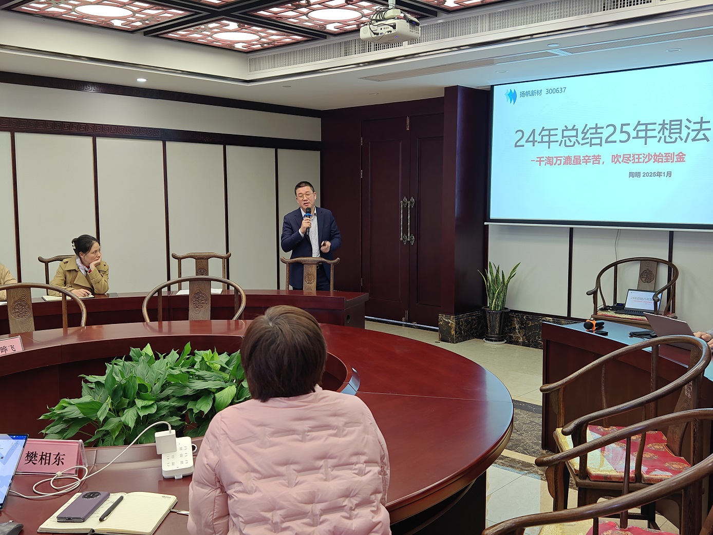 陶明總裁在總結(jié)致辭中肯定了大家在2024年所取得的成績,他指出:“2025年是揚帆新材戰(zhàn)略布局的關(guān)鍵一年,將為推動公司技術(shù)突破、產(chǎn)業(yè)鏈延伸打好基礎(chǔ),為公司接下來的布局發(fā)展貢獻(xiàn)力量。2025年將整合公司力量、市場信息與在研項目,加大銷售力度,增加研發(fā)投入,推出更有效率的績效考核辦法,大力推進(jìn)工廠6S管理,徹底改變企業(yè)面貌,擔(dān)起更多的社會責(zé)任。”